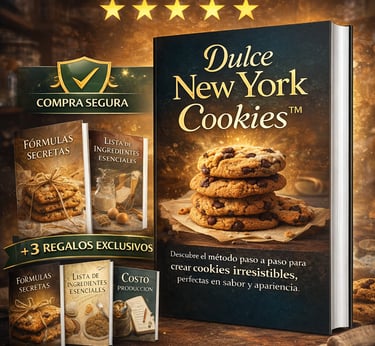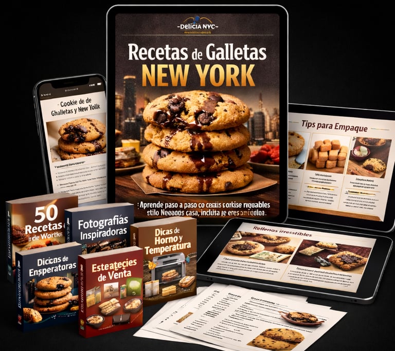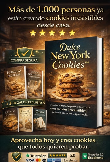 Incluye 50 recetas paso a paso con fotos profesionales, técnicas de horno y todo lo necesario para lograr cookies perfectos estilo Nueva York.